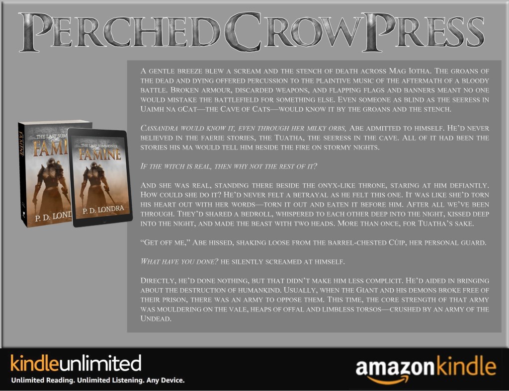 Seething and hurting, Abe steered his mare through the dead, keeping his eyes averted. He didn’t want the gore to remind him of how easily Balor’s horde felled them like saplings before the woodsman’s axe. He couldn’t avoid the horror entirely. The dead and dying littered the vale. The few survivors were sitting where they’d been when the enemy abandoned the battle; some cried, others just stared, their eyes full of the horror they’d just witnessed. Helmets were off, heads down, sweaty, matted locks a testament to the effort they’d expended trying to stay alive. There was also relief. If the undead hadn’t abandoned the field, most, if not all, would have died. Sitting in a post-battle fugue, no one was thinking of their friends and comrades mangled and bloody beside them—there would be time for grief after the horror subsided in their own minds.